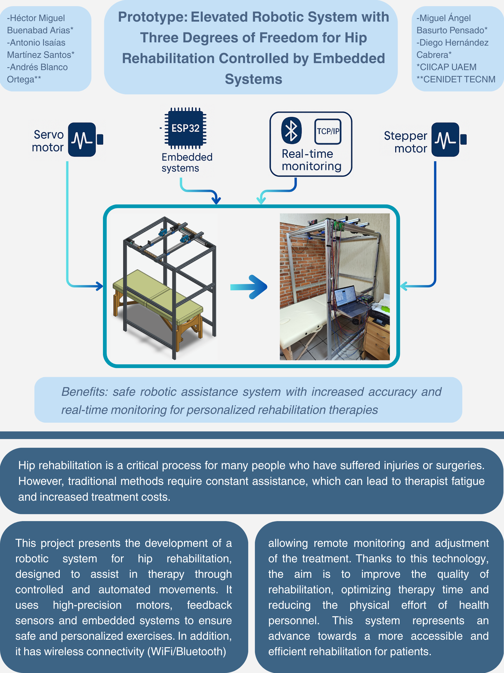 • Prototype: Elevated robotic system with three degrees of freedom for hip rehabilitation controlled by embedded systems